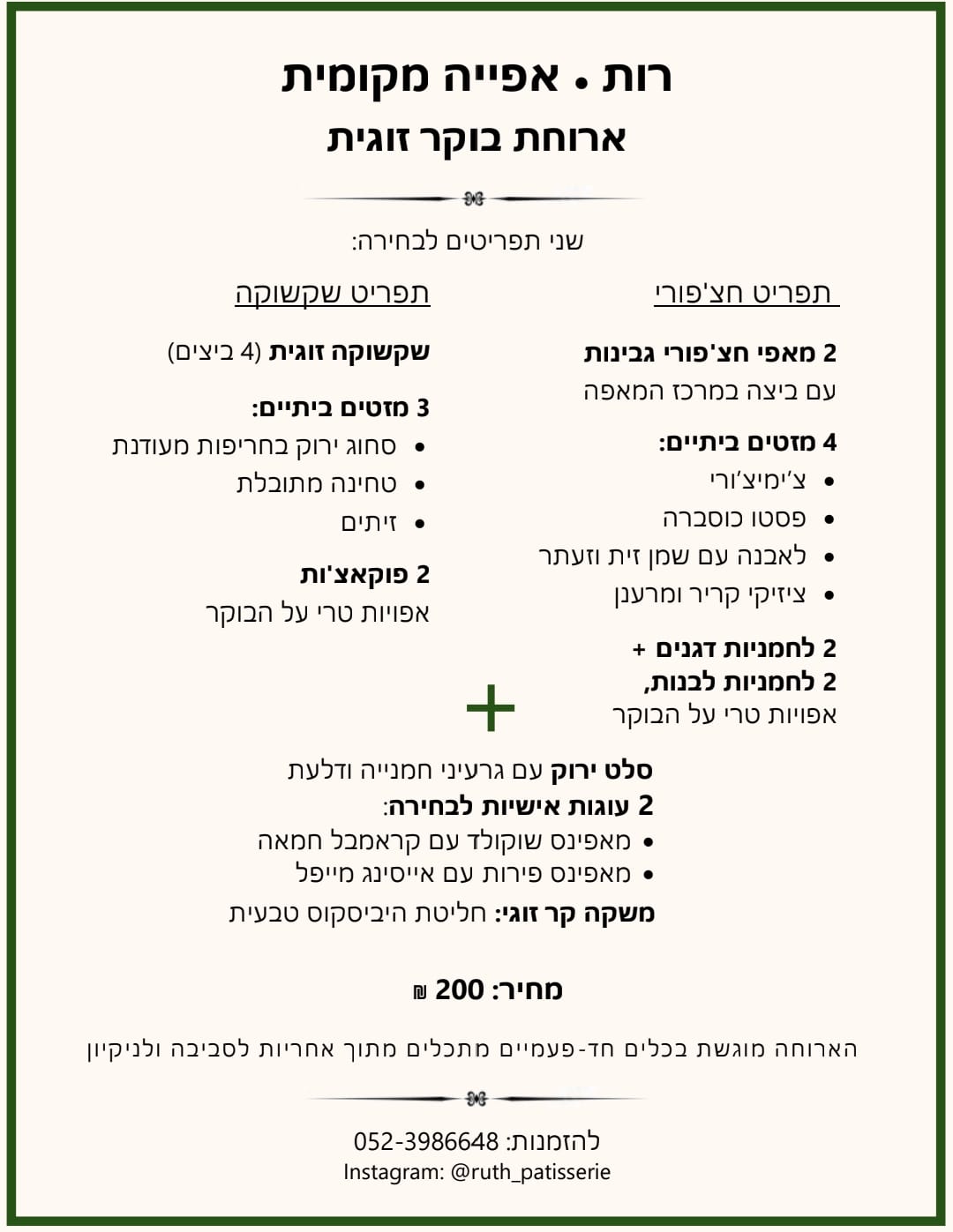 לחלופין ניתן להזמין ארוחה עד הצימר מן האנשים הבאים: